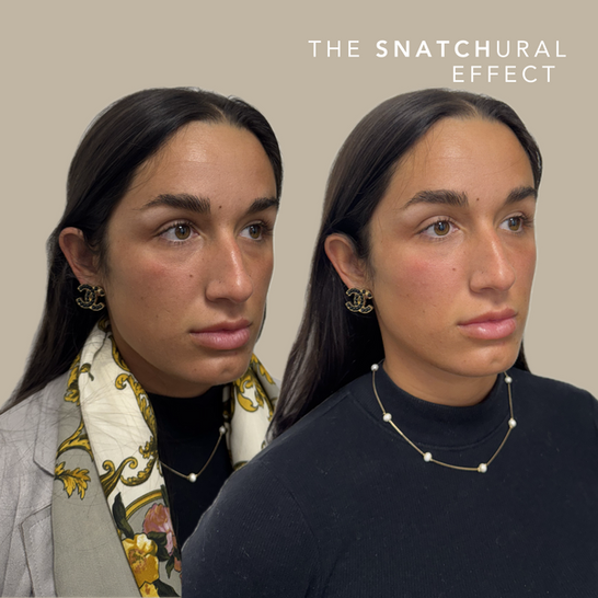 he results of The SNATCHural Effect delivered a balanced and refined look, enhancing her lateral cheeks, lips, and chin while beautifully showcasing her unique features without overwhelming them.